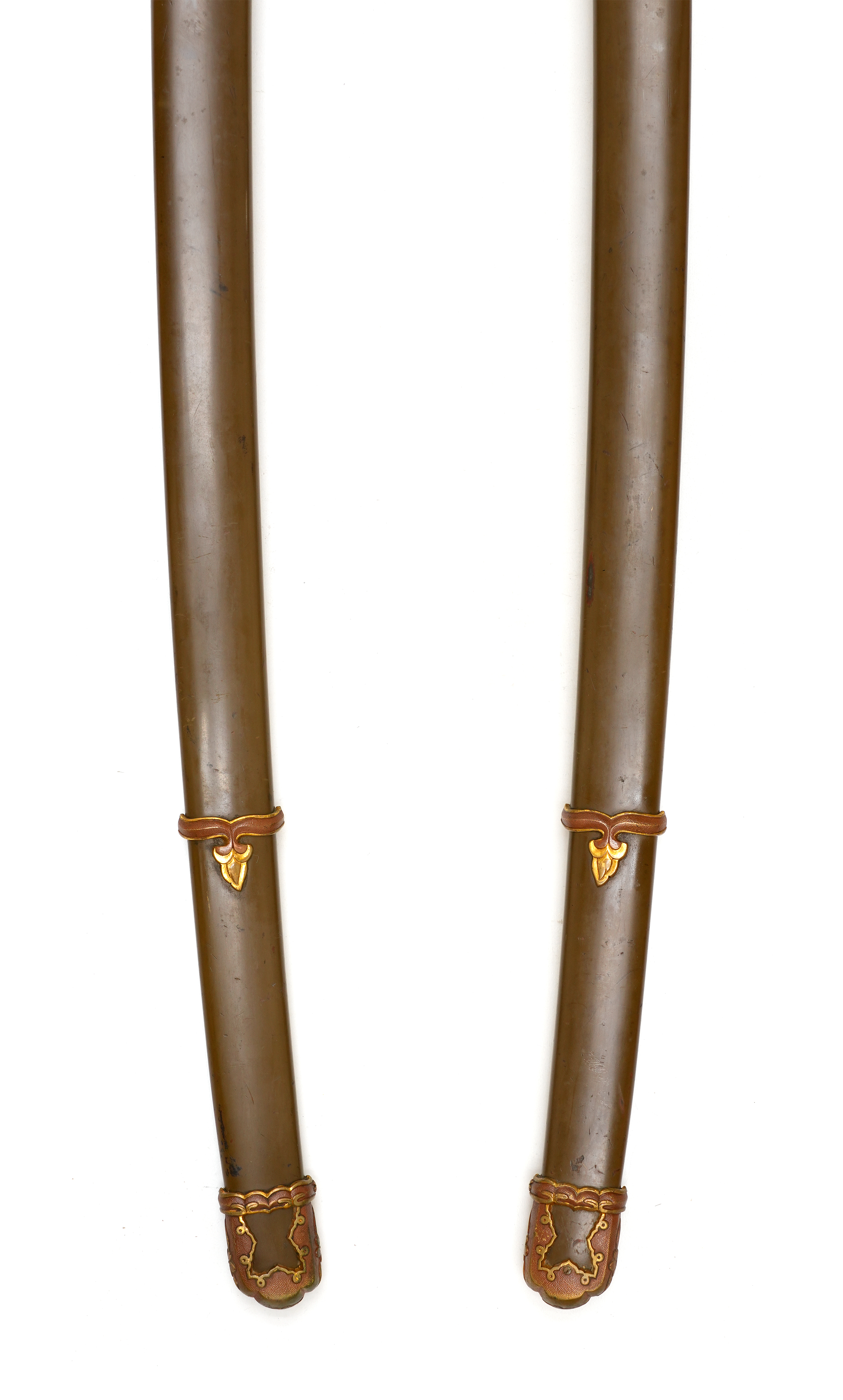 昭和9年(1934)2月14日、皇室令第三號で大元帥陛下の新御佩刀と、勅令二十六號で陸軍の一般将校用新軍刀が制定され、西洋サーベル型式から日本の太刀を模した新たな外装へと転換され、九四式軍刀が誕生しました。
