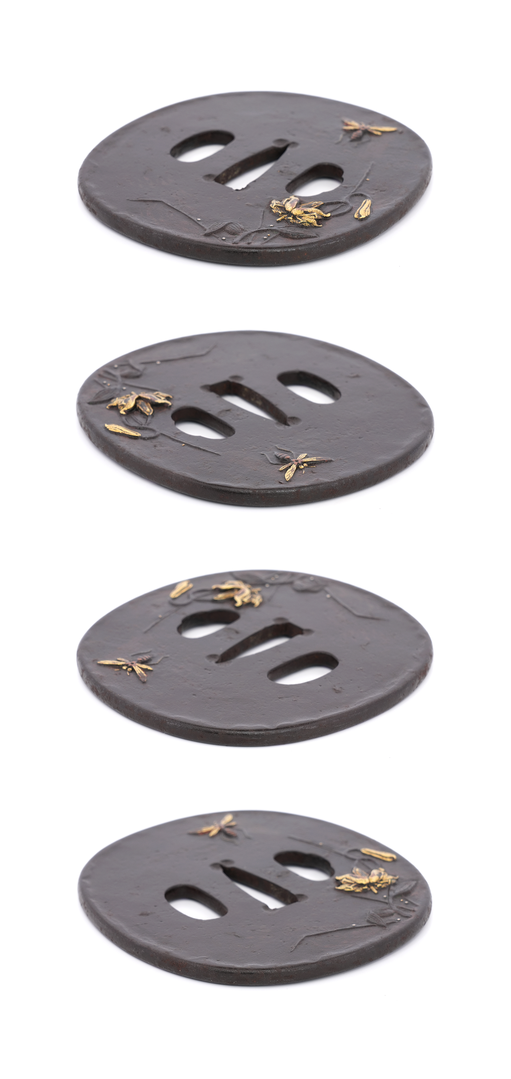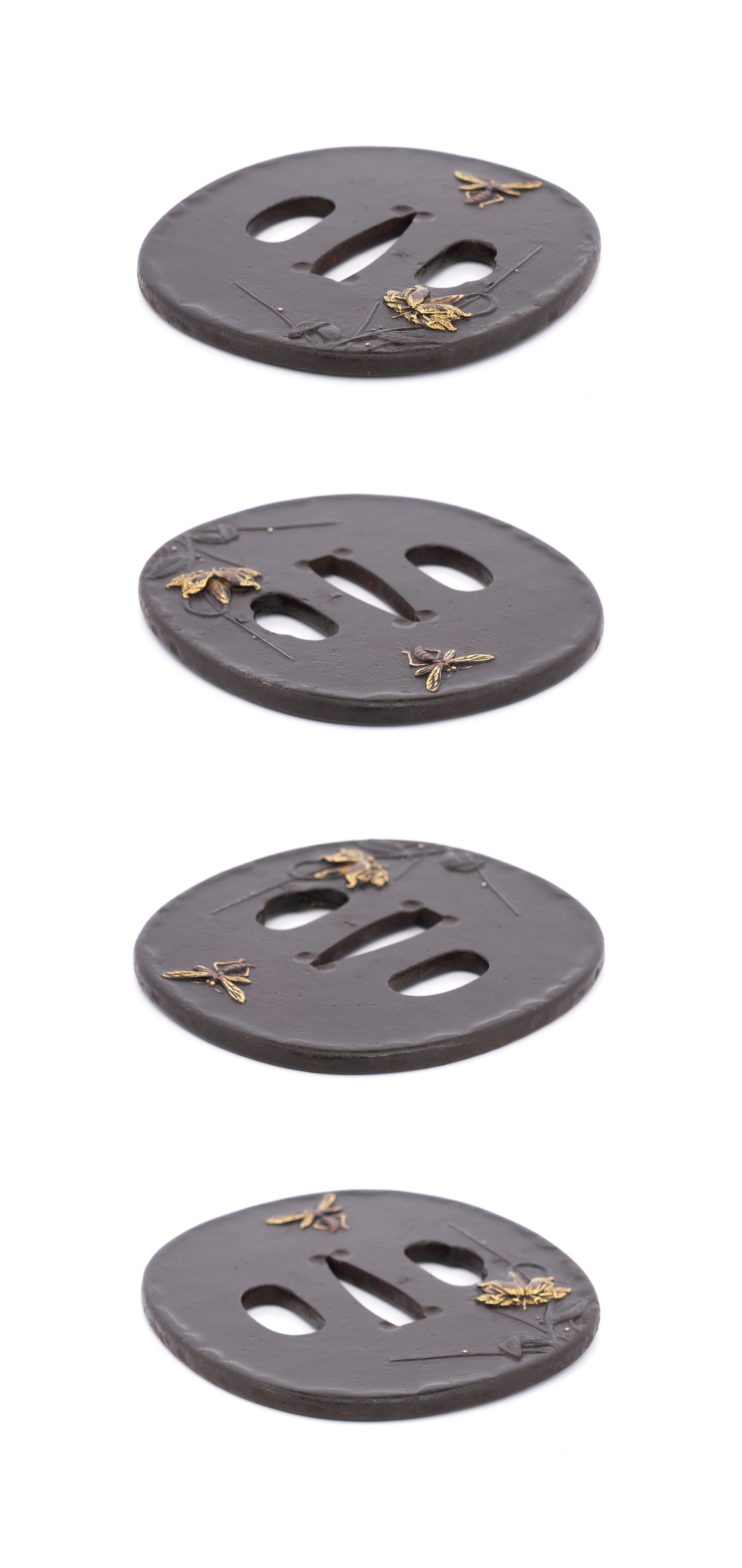 百合に蜂図大小鐔 無銘 -Mumei- 12-1442