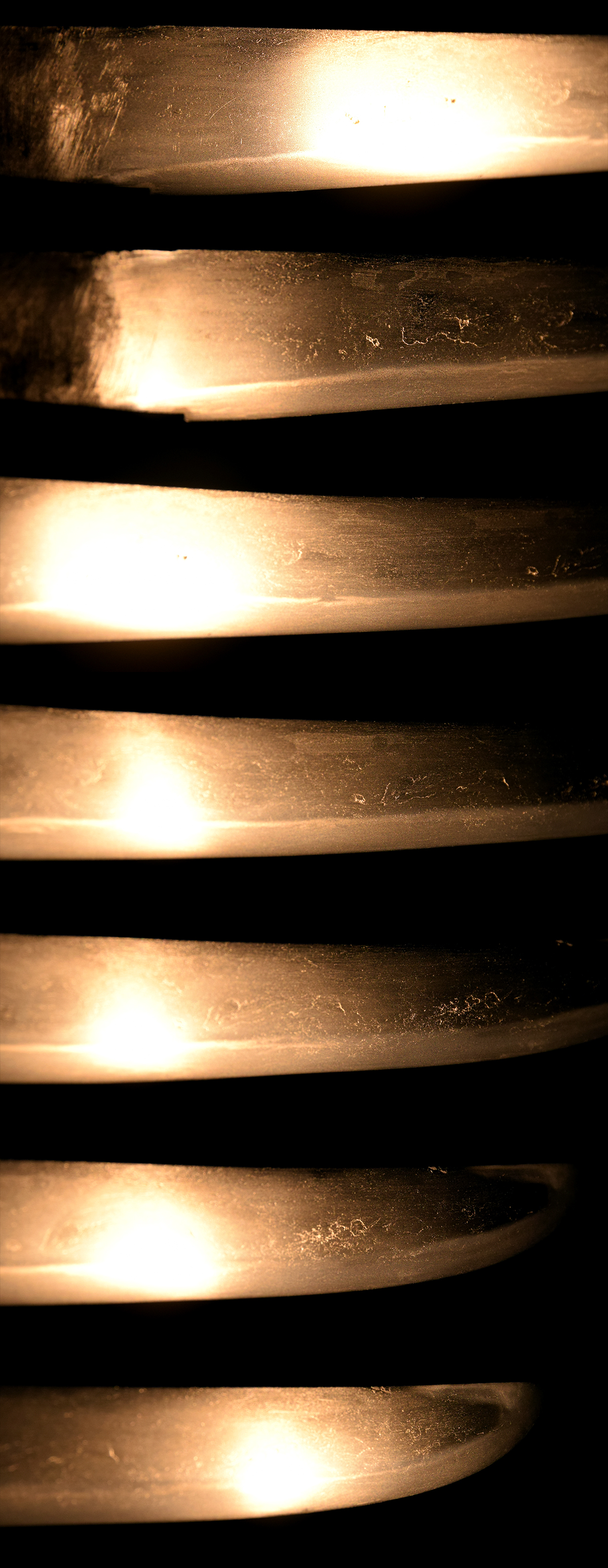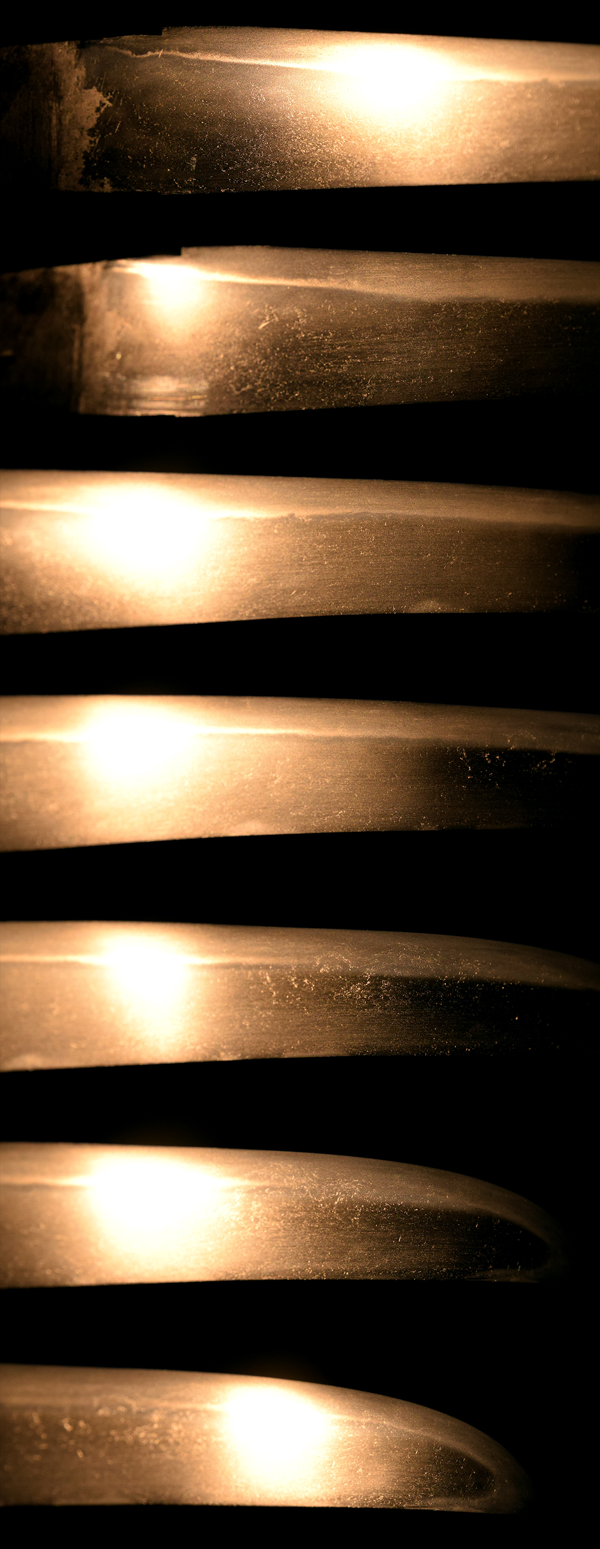 現状は古研ぎのため匂口が沈んで見えますが、研磨により本来の刃中の表情がより明瞭になることが期待されます。