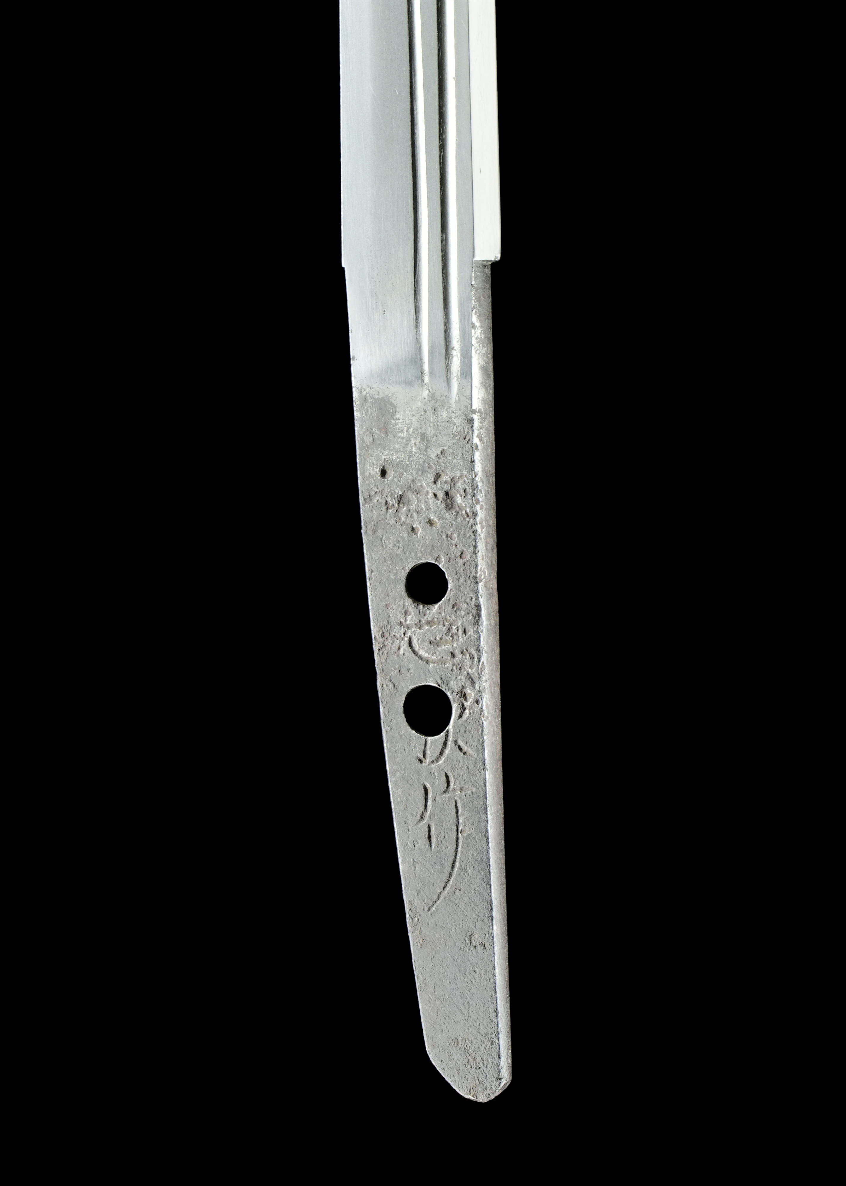 刃文はやや湾れごころを交えた直刃。刃縁に小沸が付き、品格ある冴えを見せます。鋩子は直ぐに先丸く、深く焼き下げて諸刃を成し、造り込みの妙と焼きの妙が見事に融合しています。