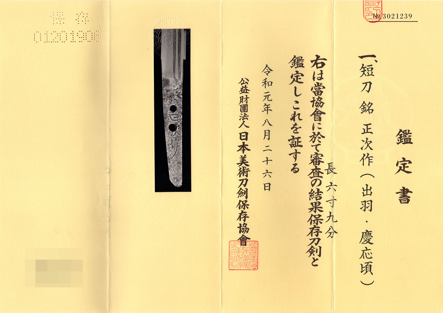 附属 保存刀剣鑑定書、白鞘、木はばき(共柄)