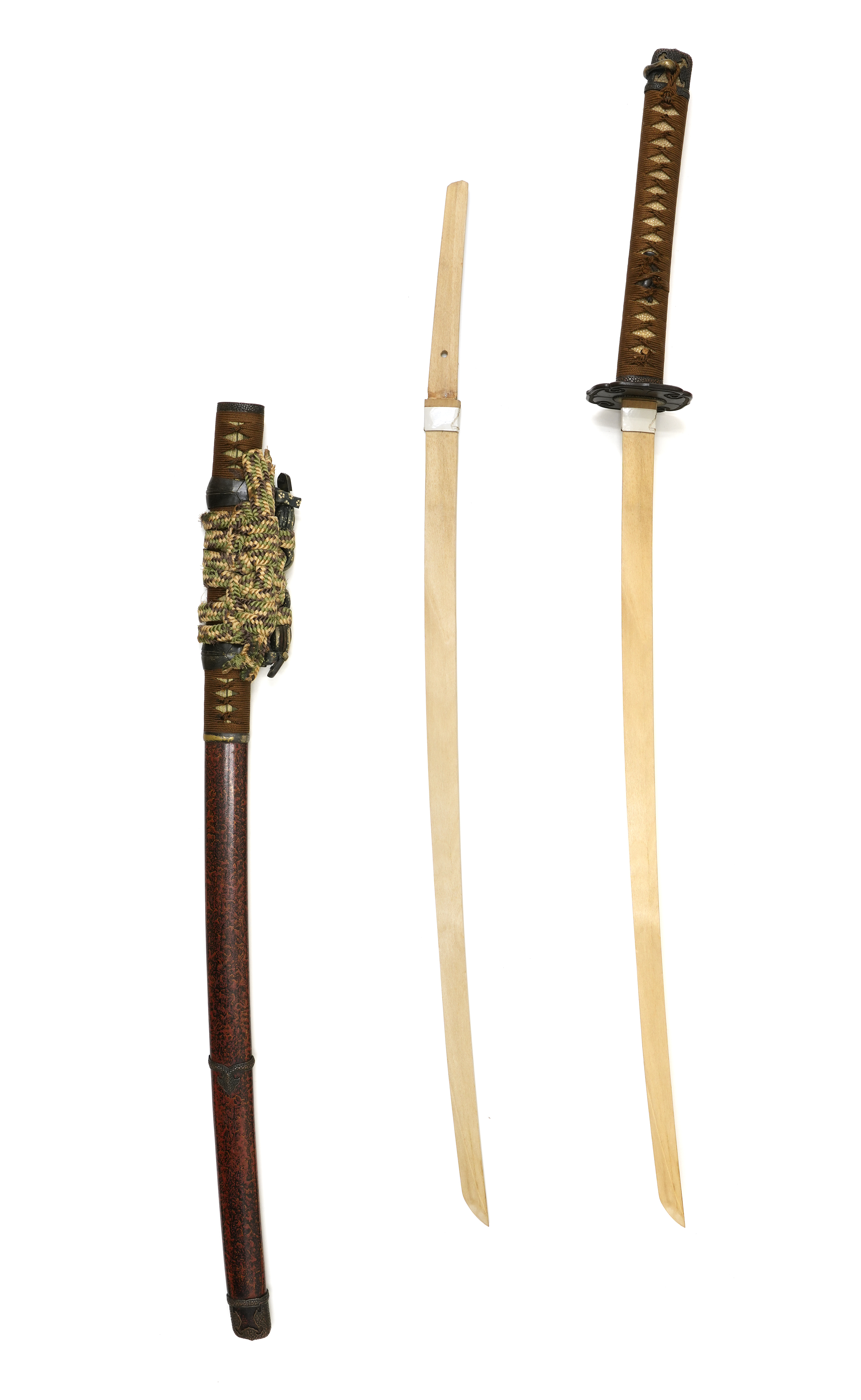 なお、本拵に添えられている継木は適当なものが合わせられているため、刀身形状の参考にはなりませんが、当方で確認したところ、刃長71センチ(二尺三寸四分)ほどの刀身を納めることが可能です。