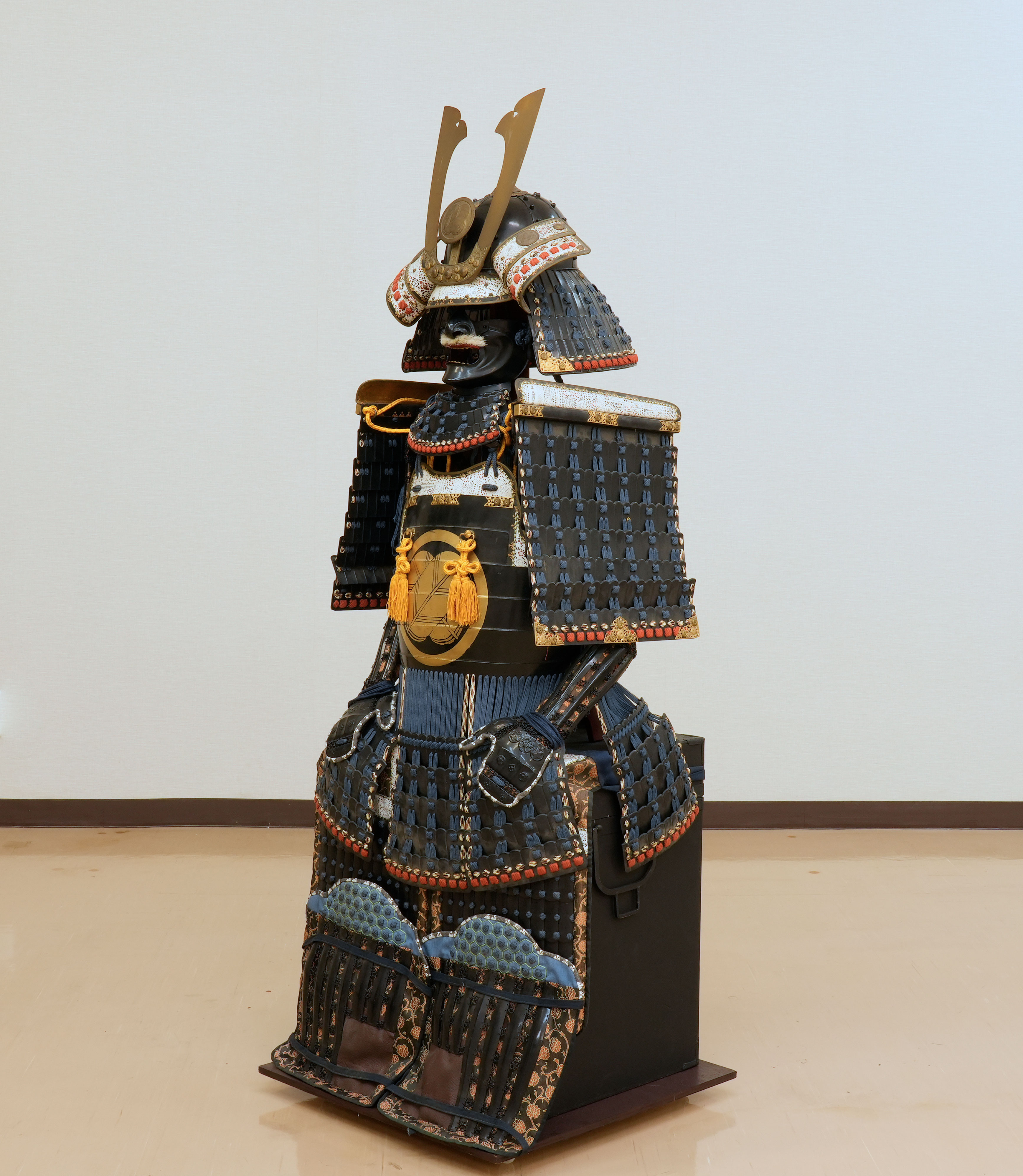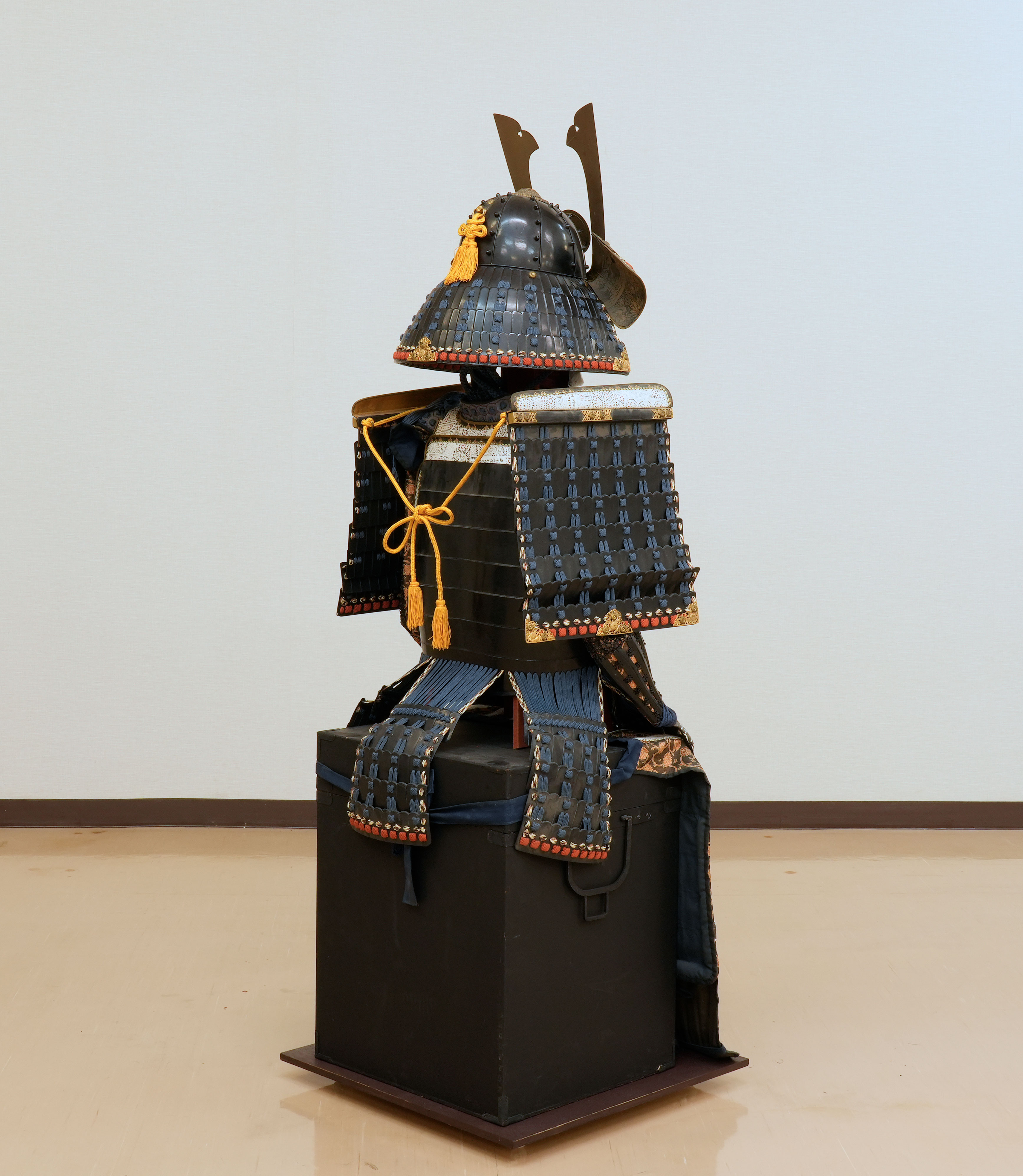 附属 鎧櫃、兜、鍬形、前立、面頬、胴、袖、籠手、佩楯、臑当、鎧立