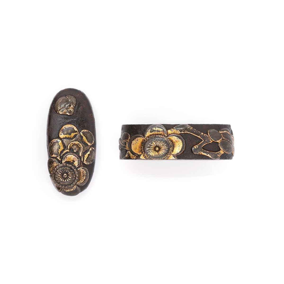 雪持草に鳥図縁頭 無銘 -Mumei- 14-249