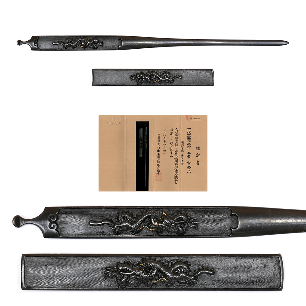 這龍図二所(小柄笄)無銘(古金工)-Mumei(Kokinko)- 16-173