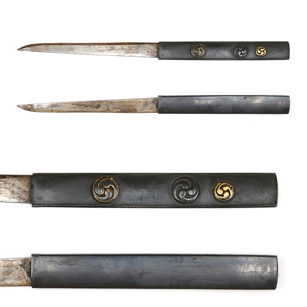 左三つ巴紋小柄(穂先付) 無銘(古金工)-Mumei(Kokinko)- 16-174