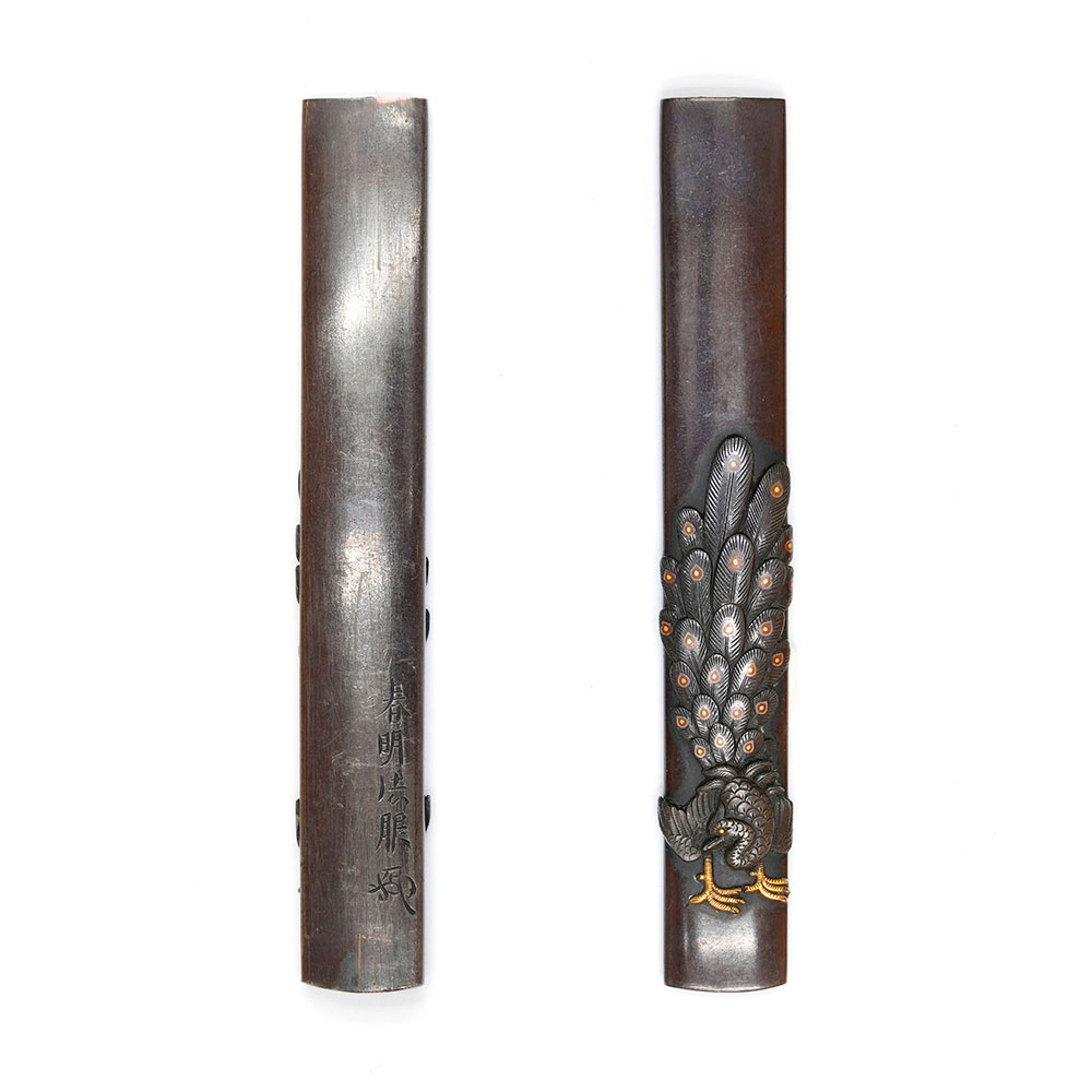 孔雀図小柄 春明法眼(花押) - Shunmei Hōgan - 16-176