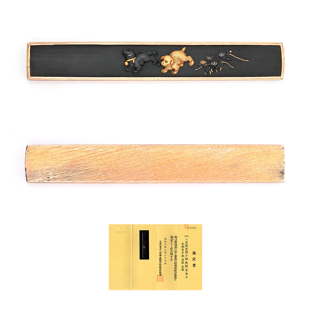 二疋狗児図小柄 無銘(京金工) -Mumei(Kyokinko)- 16-177