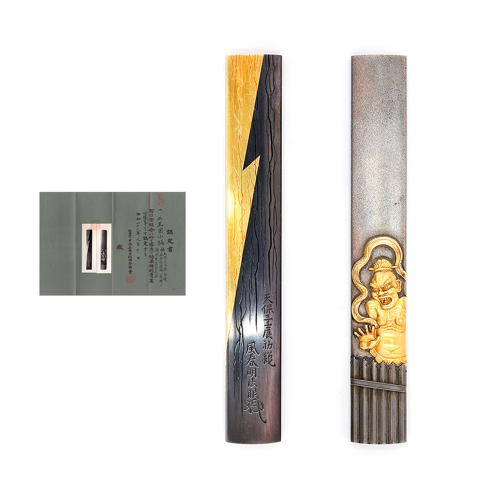 仁王図小柄 (花押) 天保三壬辰初穐 風春明法眼(花押) -Shunmei Hogan- 16-181